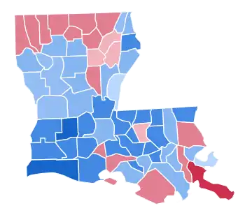 | Saint Tammany | 14,691 | 46.79% | 15,822 | 50.39% | 319 | 1.02% | 158 | 0.50% | 256 | 0.82% | 153 | 0.49% | -1,131 | -3.60% | 31,399 |