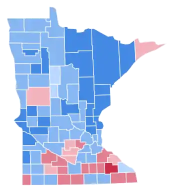 As of the 2020 presidential election, Minnesota has not cast a single electoral vote in favor of a Republican since 1972, and no other state has come close to this Democratic-voting streak.[3] As of the 2020 presidential election, this is the last election in which Roseau County, Wilkin County, Douglas County, Wadena County, and Pipestone County voted for a Democratic presidential candidate.[4]