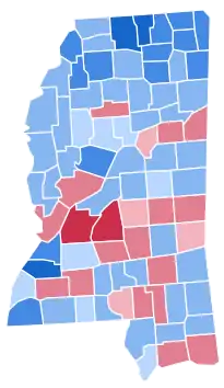 As of the 2020 presidential election, this is the last time a Democrat won the state of Mississippi, as well as Hancock County, Neshoba County, DeSoto County, Carroll County, Covington County, Pearl River County, George County, Wayne County, Stone County, Greene County, Perry County, and Webster County.[2]