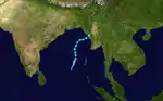 Another tropical depression formed in the Bay of Bengal on October 25 and moved northwestward.[1] The depression became a cyclonic storm the following day[3] The storm then turned to the northeast and then back to the northwest[1] were its winds peaked at 45 mph (70 km/h) before dissipating off the coast of Bangladesh on October 28.[3]