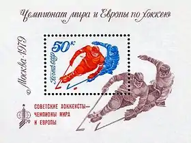 ![]() Soviet stamp sheet dedicated to the 1979 World Ice Hockey Championships | |