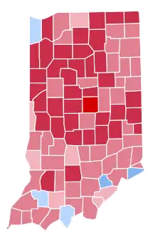 | Vanderburgh | 36,248 | 51.07% | 29,930 | 42.17% | 4,150 | 5.85% | 464 | 0.65% | 190 | 0.27% | 6,318 | 8.90% | 70,982 |