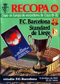 The 1982 European Cup Winners' Cup Final was a football match contested between Barcelona of Spain and Standard Liège of Belgium. It was the final match of the 1981–82 European Cup Winners' Cup and the 22nd European Cup Winners' Cup final. The final was held on 12 May 1982 at Camp Nou in Barcelona, Spain, the home ground of FC Barcelona. Barcelona won the match 2–1 thanks to goals by Allan Simonsen and Quini. The 2nd goal for Barcelona was after a free kick. Barcelona player Quini took the free kick before the referee had blown his whistle. The referee approved this goal. This led to much frustration to the players of Standard. Standard Liège centre back Walter Meeuws was sent off in the final minute after receiving his second yellow card for a foul on Lobo Carrasco due to this incident.