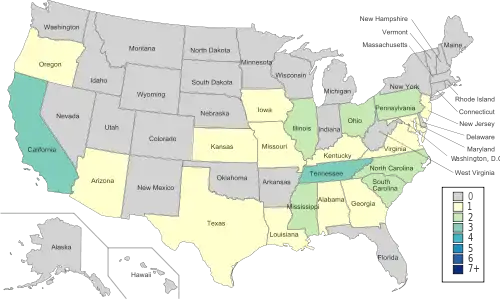 | 3 | Tennessee | Memphis, Tennessee Tech, Tennessee |