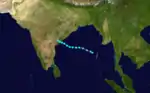 Tropical Depression 2B developed from the monsoon trough in the central Bay of Bengal on May 30. It headed northeastward, becoming a tropical storm later that day and reaching a peak of 65 mph winds on the 31st. The storm turned to the northwest, where it weakened to a tropical depression. It restrengthened, and hit near Paradip, India on the 3rd as a 65 mph tropical storm. The storm brought heavy flooding amounting to 140 casualties and destroying over 500,000 homes. Whole coast of Odisha suffered major damages. Districts of Puri, Cuttack and Balasore were the worst affected among them.