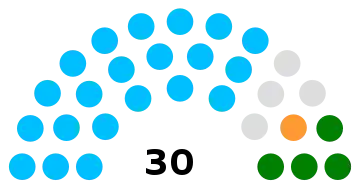 The election was held in 1,127 different polling stations and the average number of electors per polling station was 283. 28 men and 2 women were successful candidates.