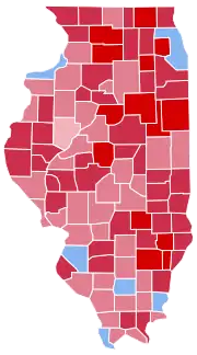 The presidential election of 1984 was a very partisan election for Illinois, with over 99% of the electorate voting only either Democratic or Republican, though several other parties did appear on the presidential ballot in the State.[3] Nearly every county in Illinois voted in majority for Reagan. One notable exception to this trend was Chicago's highly populated Cook County, which voted in majority for Mondale, albeit with a 2.6% margin, or 51% to 48.4%. 1984 marks the last time any presidential candidate won Cook County with a single digit margin, and the last election that a Republican won over a million votes in that county.