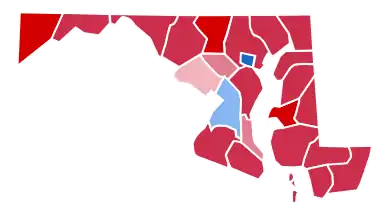 The vast majority of counties voted for Reagan, winning not just the traditionally Republican western region and Eastern Shore, but also the traditionally Democratic central portion of the state. The race, however, was close due to Mondale's strong performance in the city of Baltimore and Prince George's County, including Reagan's weak performance in Montgomery County, which he won by 888 votes, which also makes this the last time to date that a Republican won this county.[2]