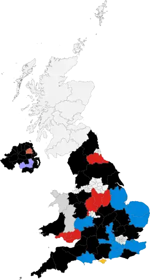 All 39 non-metropolitan counties, 1 sui generis authority, all 26 Northern Irish districts and all 8 Welsh counties | |||||||||||||||||||||||||||||