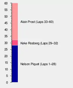 | 1 | 1 | McLaren-TAG | 60 | 1:32:28.408 | 4 | 9 | |