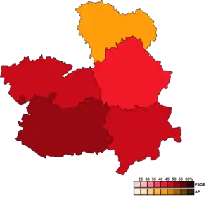![]() Constituency results map for the Cortes of Castilla–La Mancha | |||||||||||||||||||||||||||||||||||||||||||||
