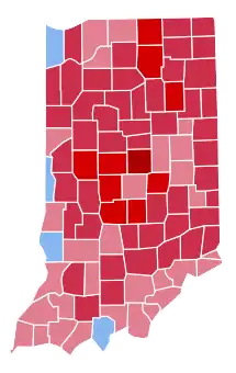 | Tippecanoe | 27,897 | 62.88% | 16,256 | 36.64% | 211 | 0.48% | 11,641 | 26.24% | 44,364 |