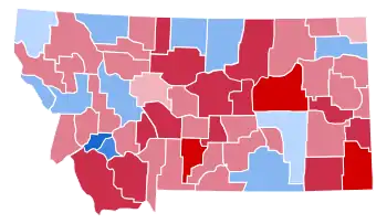 Bush won by a margin of 5.87%, much less than usual in this typically solid Republican state, largely due to the persistent drought and Farm crisis on the Great Plains, a result making Montana 1.93% more Democratic than the than the national average. Since 1916 this is the solitary election when Blaine County, one of the most consistent bellwether counties in the nation, has supported a losing presidential candidate.[1] It is also the last time Montana has voted more Democratic than the nation at-large and one of only three since 1952 (along with 1956 and 1972),[2] and the last occasion northwestern Lincoln County has supported a Democratic Presidential nominee,[3] although Bill Clinton would carry the state in 1992 (while also coming close to doing so again in 1996) and Barack Obama nearly did in 2008 as well. As of 2021, Lincoln County is one of only eight counties Dukakis won in 1988 -- the others are in Iowa, with four, and Texas, with three -- that have never backed a Democrat since. Bush became the first Republican to win the White House without carrying Lewis and Clark County since William Howard Taft in 1908, as well as the first to do so without carrying Missoula County since Calvin Coolidge in 1924.