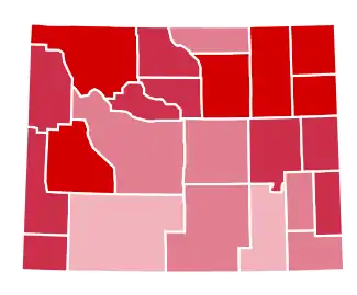 Bush won the election in Wyoming with a solid 22 point landslide, sweeping all 23 of the state's counties. Dukakis' best county, and Bush's worst, was Sweetwater County, which Bush won by 60 votes, or less than half of 1%. Sweetwater County is one of Wyoming's "Union Pacific counties" that traditionally formed the Democratic Party's base in the state.[2] Bush broke 70% in six counties, of which four were in the state's east and one, Park County, in the Bighorn basin, traditional areas of Republican strength in the state;[3] Sublette County rounded out this group. Overall, however, Bush's 22.52% margin in the state made it 14.80% more Republican than the nation overall. The Mountain West had trended Republican beginning in the 1952 election;[4] after voting for Truman in the nationally close 1948 election, Wyoming had consistently voted to the right of the country in every subsequent election. In 1988, it did so once again, even as some other Mountain states' traditional Republicanism wavered, as in Colorado and Montana. Bush's vote share of 60.53% made Wyoming his third-best state in the region (after Utah and Idaho), and his sixth-best overall (after Utah, New Hampshire, Idaho, South Carolina, and Florida). Along with New Hampshire, Nevada, Delaware, and Maine, it was also one of five states where every county voted for Bush.