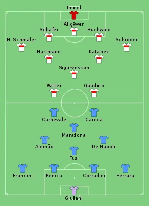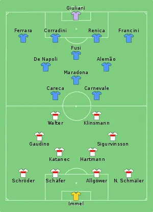 The 1989 UEFA Cup Final was an association football tie played on 3 May 1989 and 17 May 1989 between Napoli of Italy and Stuttgart of West Germany. Captained by Diego Maradona, Napoli won the two-legged final 5–4 on aggregate to win their first major European honour.