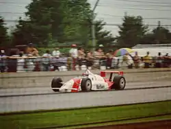 With three laps to go, Luyendyk led Rahal by 13.3 seconds. Third place Emerson Fittipaldi caught Luyendyk, and was attempting to un-lap himself. After closely pursuing for a couple laps he made his move on Luyendyk. Fittipaldi did so on the main stretch with one lap to go, which distracted Luyendyk, and he did not see the white flag. The next time around, the checkered flag was displayed, and Luyendyk won his first-career Indy car race.