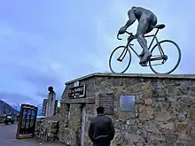 On stage 11, the course ended with the final ascent to L'Alpe d'Huez, considered one of the most iconic climbs in cycling. Two mountains had to be crossed beforehand: the Col de la Madeleine and the Col du Glandon. Claveyrolat attacked again, early on during the ascent of the Madeleine, and gathered the mountain points at the summit. Mottet started to drop behind the group of favourites on the Madeleine, while Bernard retired. On the descent, Induráin got away but was overtaken by Claveyrolat on the climb of the Glandon. In between the climbs, at the feed zone, LeMond was involved in a crash, but able to carry on.[88] On the Glandon, Delgado accelerated and only LeMond and Bugno were able to follow. Together they caught Induráin, who set the pace in the group through the ensuing valley and ensured that they reached Claveyrolat by the foot of the final climb. Shortly after the group began the ascent, Delgado attacked, with LeMond and Bugno following. As the pace slowed, Claveyrolat, Parra, and Breukink managed to catch back up. 3 km (1.9 mi) from the finish, Delgado lost contact with Bugno, who accelerated and took LeMond, Breukink, Claveyrolat, and Parra with him. It were Bugno and LeMond who were fastest along the finishing straight, with Bugno coming out on top to win the stage. Breukink finished third, one second behind LeMond in second place. Meanwhile, Millar paced Pensec up the climb, who finished 48 seconds behind Bugno and retained the race lead.[89] Delgado lost forty seconds, while Induráin, exhausted by his work on the flat, lost 12 minutes on Alpe d'Huez, falling from contention.[90] Chiappucci finished 1:48 minutes behind Bugno. This left Pensec first overall, 1:28 minutes ahead of Chiappucci, with LeMond up to third, but still 9:04 minutes behind his teammate.[72] Alcalá had lost 5:41 minutes on Bugno, and therefore dropped to eighth place overall.[91]