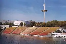 Of the 198 cyclists starting the race, 58 were riding the Tour de France for the first time.[11] The average age of riders in the race was 27.77 years,[12] ranging from the 21-year-old Antonio Miguel Díaz (Kelme–Ibexpress) to the 35-year-old Gilbert Duclos-Lassalle (Z–Tomasso).[13] The Kelme–Ibexpress cyclists had the youngest average age while the riders on Panasonic–Sportlife had the oldest.[14] The presentation of the teams – where the members of each team's roster are introduced in front of the media and local dignitaries – took place at the lakeside arena at Futuroscope theme park, 10 km (6.2 mi) north of the city of Poitiers, west-central France, which later hosted the prologue stage.[15]