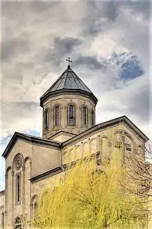 Around 07:30, Murtaz Shualashvili orders the first fire against Parliament[59] and Karkarashvili launches four rockets on the Parliament building,[47] inaugurating two weeks of violence. According to a New York Times report, the opposition refuses to accept any responsibility with the first attack.[60] Throughout 22 December, both sides use rockets, grenades, and automatic weapons to fight each other.[60] The Kashveti Church, which houses opposition soldiers, becomes a target of governmental forces.[61] The Gamsakhurdia household, nicknamed "Colchis Bell", catches fire,[47] but the family, under governmental protection during the coup, remains safe.[39]