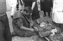 The Military Council, which represents the opposition, declared during the conflict that the majority of pro-Gamsakhurdia soldiers were 18 or 19 years old and were coerced into fighting.[37] According to the Council, there was only a very small group of armed fighters belonging to the government's OMON, a special, highly trained branch of the National Guard.[37] Some of those who fought on Gamsakhurdia's side were reportedly devoted female followers of his dressed in black, known as "furies" or the "Black Pantyhose Battalion".[41][42] A youth militia from the mountainous region of Svaneti, nicknamed "Lemi" (ლემი, or "Lion" in Svan) also fought for the president.[42]