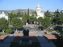 The morning of 22 December, according to the witness testimony of former deputy Sandro Bregadze, Sigua orders his personal guard, led by former Soviet secret service officer Murtaz Shaluahsvili, to position itself in Alexandrov Park (today known as the April 9 Park), in order to target the Parliament.[59] With just the Kashveti Church serving as a buffer between both camps, government authorities send Mayor Tamaz Vashadze of Tbilisi and deputy Avtandil Rtskhiladze on a negotiation mission one last time before the beginning of the hostilities, but the two are kidnapped by Sigua's forces.[47]