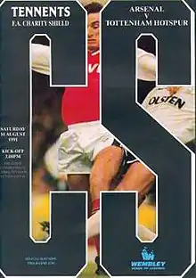 Arsenal qualified for the 1991 FA Charity Shield, by virtue of winning the 1990–91 Football League First Division, having lost one match – away to Chelsea – in the entire campaign.[3] This was the club's eleventh Charity Shield appearance; Arsenal won seven previous shields (1930, 1931, 1933, 1934, 1938, 1948, 1953) and lost four (1935, 1936, 1979, 1989) previously. Tottenham Hotspur qualified as holders of the FA Cup, beating Nottingham Forest 2–1 in the 1991 FA Cup Final.[3] They appeared in five previous shields, winning four outright (1921, 1951, 1961, 1962), sharing two (1967, 1981) and losing two (1920, 1982).
