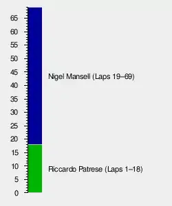 The 69-lap race was won by Nigel Mansell, driving a Williams-Renault, after he started from pole position. Mansell took his sixth victory of the season by 46 seconds from teammate Riccardo Patrese, who led the first 18 laps. Martin Brundle finished third in a Benetton-Ford.