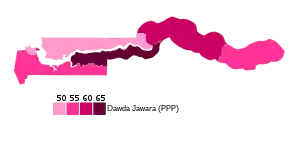 A total of 130 candidates ran for the 36 elected seats, although the PPP was the only one with a candidate in every seat.[2] The opposition campaign centred on corruption and economic mismanagement, whilst the PPP promised it would boost the tourism industry and support groundnut farmers.[2]