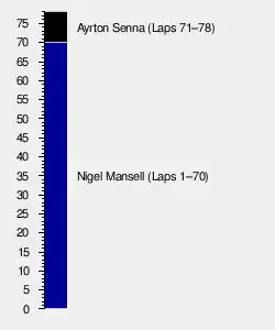Mansell's teammate Riccardo Patrese was third, half a minute behind, with the top six completed by the Benettons of Michael Schumacher and Martin Brundle and the Larrousse of Bertrand Gachot.
