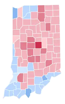 | Vanderburgh | 30,271 | 39.39% | 33,799 | 43.99% | 12,513 | 16.28% | 257 | 0.33% | -3,528 | -4.59% | 76,840 |