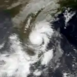 A low-pressure area formed over the western Bay of Bengal on October 28. On the next day, the IMD classified it as a depression, and soon upgraded it to a deep depression. On October 30, the IMD upgraded it further to a cyclonic storm and later a severe cyclonic storm, estimating peak 3–minute winds of 110 km/h (70 mph); this was based on the appearance of a well-defined eye. Also on October 30, the JTWC initiated advisories on the system as Tropical Cyclone 04B north of Sri Lanka. The storm consisted of a consolidating area of thunderstorms, with spiral rainbands. Steered by a ridge to the north, the system moved west-northwestward toward the southeast coast of India. Early on October 31, the storm made landfall in southeastern India near Chennai with winds of 110 km/h (70 mph), according to the IMD, and 85 km/h (55 mph) according to the JTWC. Late on October 31, the storm fell below depression status after weakening over land.[2][1]