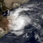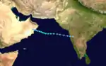 After the annual monsoon moved across India, a thermal low developed in early June over Maharashtra in west-central India. Steered by the flow of the monsoon, the low moved offshore and tracked generally west-northwestward, bringing heavy rainfall and gusty winds to the coast. Ratnagiri, Maharashtra reported sustained winds of 74 km/h (46 mph). The IMD classified the low as a depression late on June 5, and upgraded it further to a cyclonic storm the next day. On June 7, the JTWC initiated advisories on the system, designating it Tropical Cyclone 03A and estimating peak winds of 85 km/h (55 mph). On the same day, the IMD upgraded the system to a severe cyclonic storm, estimating peak winds of 100 km/h (60 mph). The storm weakened as it continued across the northern Arabian Sea. By June 9, the storm had weakened to a depression, and that day it passed near Masirah Island before moving over eastern Oman. The circulation dissipated soon after, but the remnants of the storm continued westward into Yemen. Along the Arabian Peninsula, the cyclone produced dust storms but little rainfall.[1][2][5]