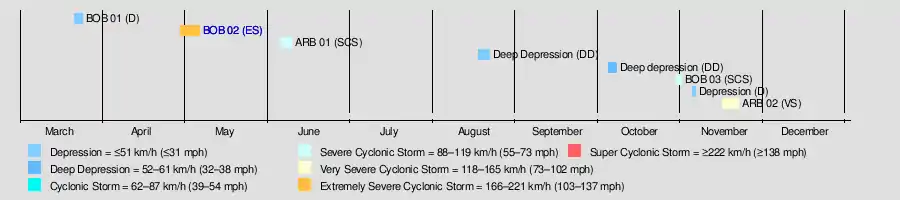 | BOB 02 | April 26 – May 2 | Extremely Severe Cyclonic Storm | 215 km/h (135 mph) | 940 hPa (27.76 inHg) | Bangladesh, Myanmar | 125 million | 350 | |