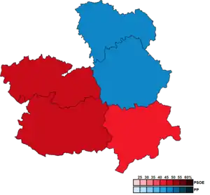 ![]() Constituency results map for the Cortes of Castilla–La Mancha | |||||||||||||||||||||||||||||||||||||||||||||