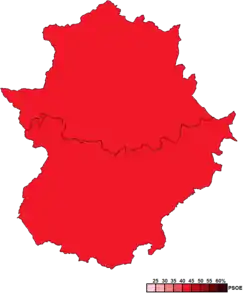 ![]() Constituency results map for the Assembly of Extremadura | ||||||||||||||||||||||||||||||||||||||||||||||||||||||||||||||||||||||||||||||||||