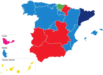 The following table lists party control in autonomous communities. Gains for a party are highlighted in that party's colour.