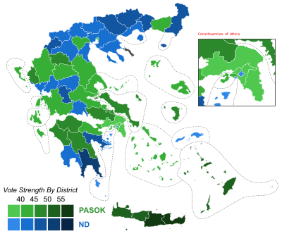 | Panhellenic Socialist Movement | 2,814,779 | 41.49 | 162 | –8 | |