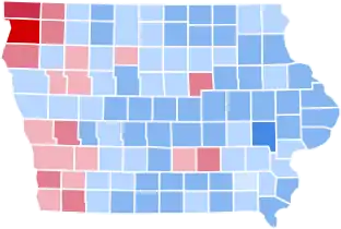 As of the 2020 presidential election, this is the last time Iowa was decided by a double-digit margin. It is also the last time that the counties of Adair, Appanoose, Butler, Calhoun, Cherokee, Clay, Dallas, Davis, Decatur, Dickinson, Guthrie, Hancock, Henry, Keokuk, Lucas, Madison, Monona, Monroe, Pocahontas, Ringgold, Taylor, Van Buren, Washington, Wayne, Wright voted for the Democratic Party presidential nominee.