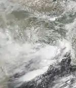 On May 13, a near-equatorial trough developed. The poorly organized system slowly tracked towards the north-northwest. The following day, deep convection consolidated around the center of circulation and the Joint Typhoon Warning Center (JTWC) classified the system as Tropical Cyclone 01B. Favorable upper-level conditions and good outflow allowed the storm to intensify. Shortly after, the cyclone attained tropical storm-force winds and turned towards the northeast. While gradually increasing in forward motion, the storm continued to strengthen. On May 17, the cyclone attained winds of 120 km/h (75 km/h), equivalent to a Category 1 hurricane on the Saffir–Simpson scale. By May 18 an eye developed and the storm reached its peak intensity with winds of 215 km/h (135 mph) before making landfall near Chittagong. After landfall, the storm rapidly tracked northeastward inland and dissipated early on May 20.[1] It caused significant damage and 67 fatalities.[2]