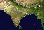 On November 2, a tropical depression developed over Sri Lanka. It drifted southward, northward, then westward over India. On the 10th, it was upgraded to a tropical storm over the Arabian Sea, and it reached its peak of 65 mph (105 km/h) winds the next day. Wind shear caused the storm to dissipate over the open waters on the 14th.
