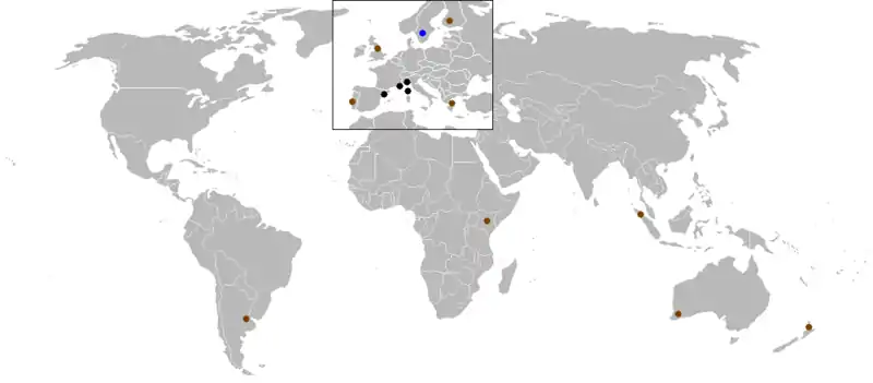 | Black = Tarmac | Brown = Gravel | Blue = Ice/Snow | Red = Mixed Surface |