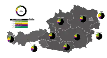 | Upper Austria | 461,139 | 107,460 | 65,867 | 55,146 | 14,444 | 989,228 | 733,913 | 704,056 | 29,857 |