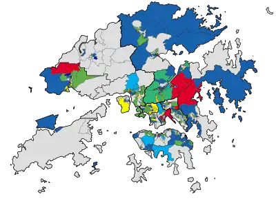 | Council | Post-election control | Largest party | DP | DAB | ADPL | PA | Lib | CF | 123DA | TF | Others | Pro-dem | Pro-Beijing | Appointed & ex officio | Composition | Details | ||