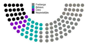 The sitting resumed at 9 p.m. with new candidates Vaira Vīķe-Freiberga, Ingrīda Ūdre and Valdis Birkavs. The results of the first vote for these candidates were as follows: Ūdre received 12 votes, Valdis Birkavs received 21 votes, and Vaira Vīķe-Freiberga received 50 votes. A total of 84 ballot papers were received, but the vote of one of them caused confusion. Namely, it was not clear whether it should be considered a vote against all candidates or a vote for Vike-Freiberga. As the tellers could not agree on which of these options to accept, it was decided to repeat the vote as a repeat of the first ballot and not as a second ballot. In the repeat vote, Vike-Freiberga received 53 votes and was elected President of Latvia.[2]