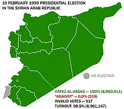 Presidential elections were held in Syria on 10 February 1999.[1] There was only one candidate, Hafez al-Assad, with voters asked to approve or reject his candidacy. A reported 100% of voters voted in favour, with a turnout of 98.5%.[2]