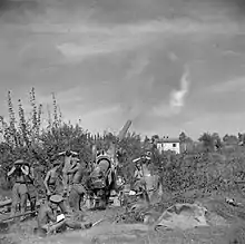 The I Highland Brigade was the senior field artillery unit in the TF's Highland Division. The batteries were each issued with four 15-pounder guns.[8][17][19][20][21][22][23]