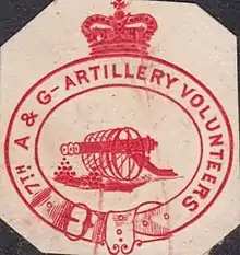 The enthusiasm for the Volunteer movement following an invasion scare in 1859 saw the creation of many Rifle and Artillery Volunteer Corps composed of part-time soldiers eager to supplement the Regular British Army in time of need.[1][2][3][4] The 1st Administrative Brigade of Ayrshire Artillery Volunteers was formed with its headquarters (HQ) at Irvine, North Ayrshire, in November 1860. It comprised the following Ayrshire Artillery Volunteer Corps (AVCs):[5][6][7][8]