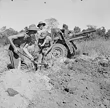 130th Field Regiment mobilised in 15th (Scottish) Infantry Division (the duplicate of 52nd (Lowland)) and served with it through the early years of war. The regiment received its 'Lowland' subtitle in 1942.[29][31][34] It left the 15th (S) Division on 4 January 1942 and sailed to India, where it joined first 14th Indian Infantry Division and later 36th Indian Division, with which it served in the Burma Campaign. 36th Indian Division became 36th British Division in September 1944 and continued fighting in Burma.[35][36]