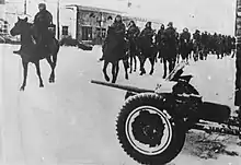The group swung north and fought against the mighty 9th Army under Generaloberst Walther Model, and after much fighting the 1st Guards Cavalry gradually gained the upper hand. On the 27th of January, the Minsk-Moscow highway had been successfully severed, cutting off one of the essential lifelines of the Wehrmacht. After that, the group was then ordered to attempt to encircle and destroy the German 9th Army, an operation which soon proved to be overly ambitious and would later result in a terrible defeat.[4]