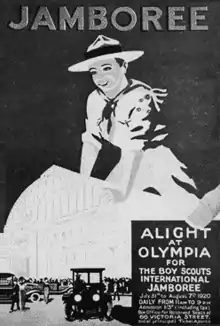 It was at this event that Baden-Powell, the founder of Scouting, was acclaimed the Chief Scout of the World.[1] The organizing secretary was Major Alexander Gawthrope Wade, MC.[2][3]